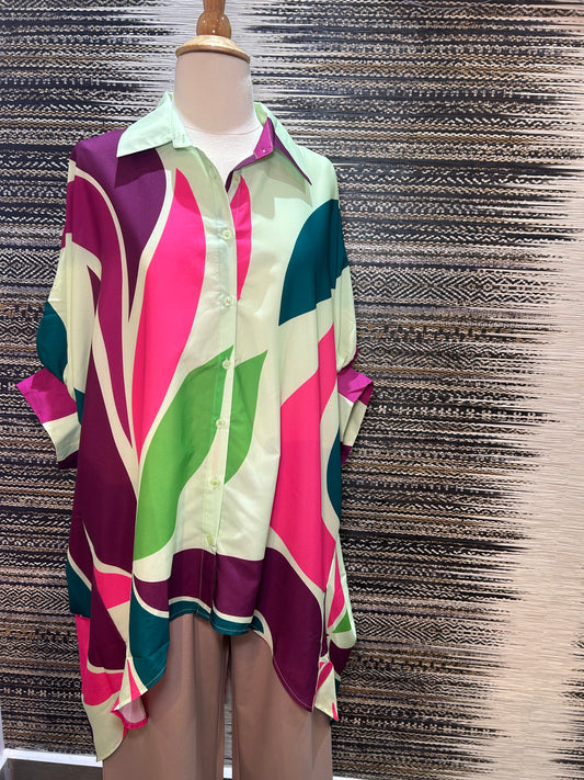 High Low Printed Button Down Loose Top