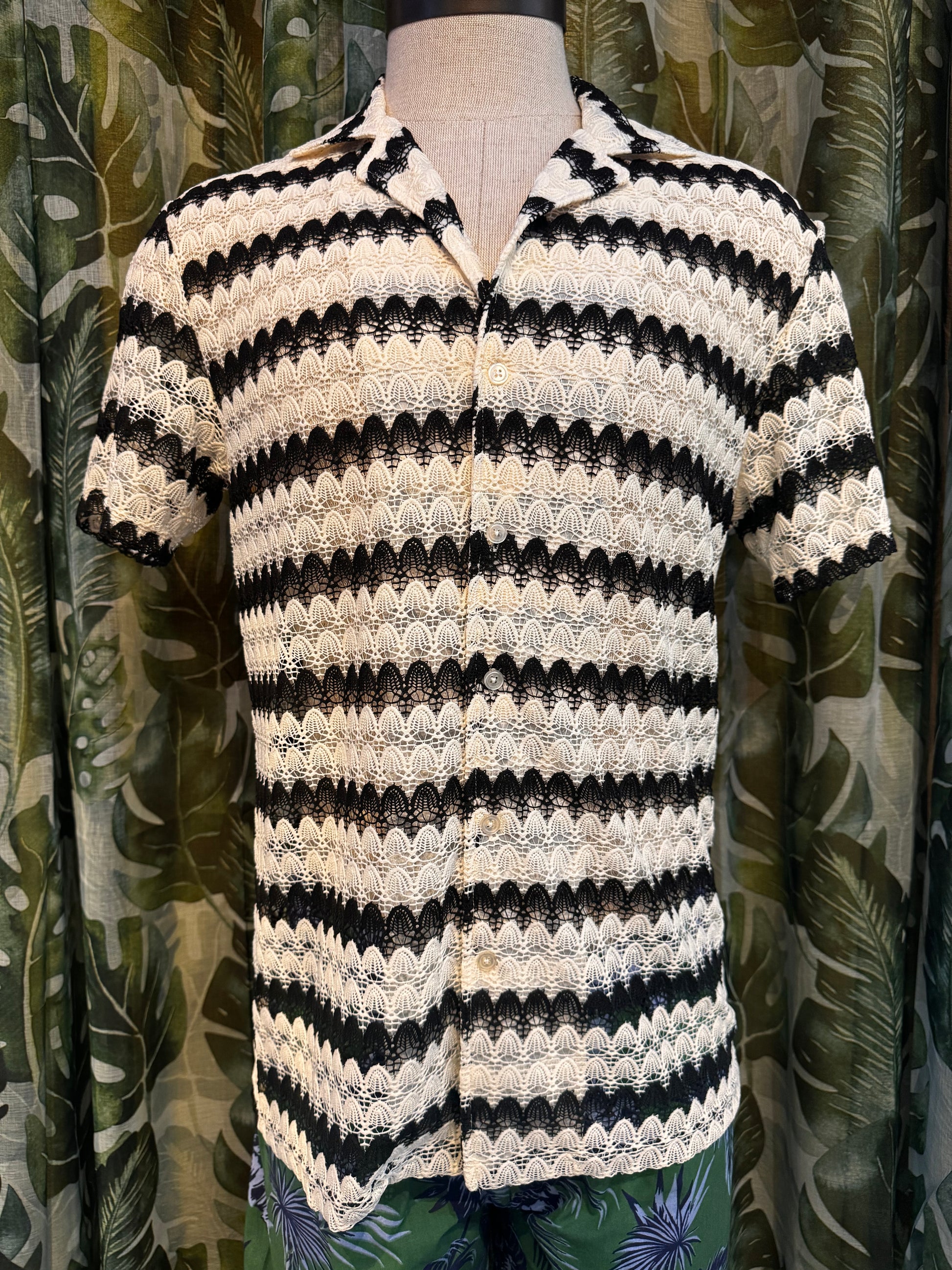 Expertly crafted with delicate crochet, our men's shirts are perfect for any occasion. Feel effortlessly stylish in the unique texture and lightweight fabric. Upgrade your wardrobe with these timeless pieces that will never go out of style. A must-have for any fashion-forward gentleman.