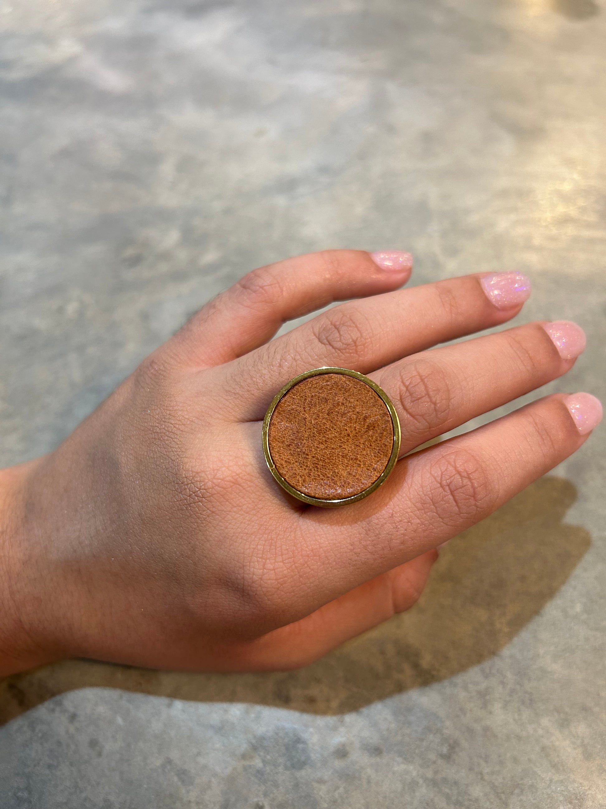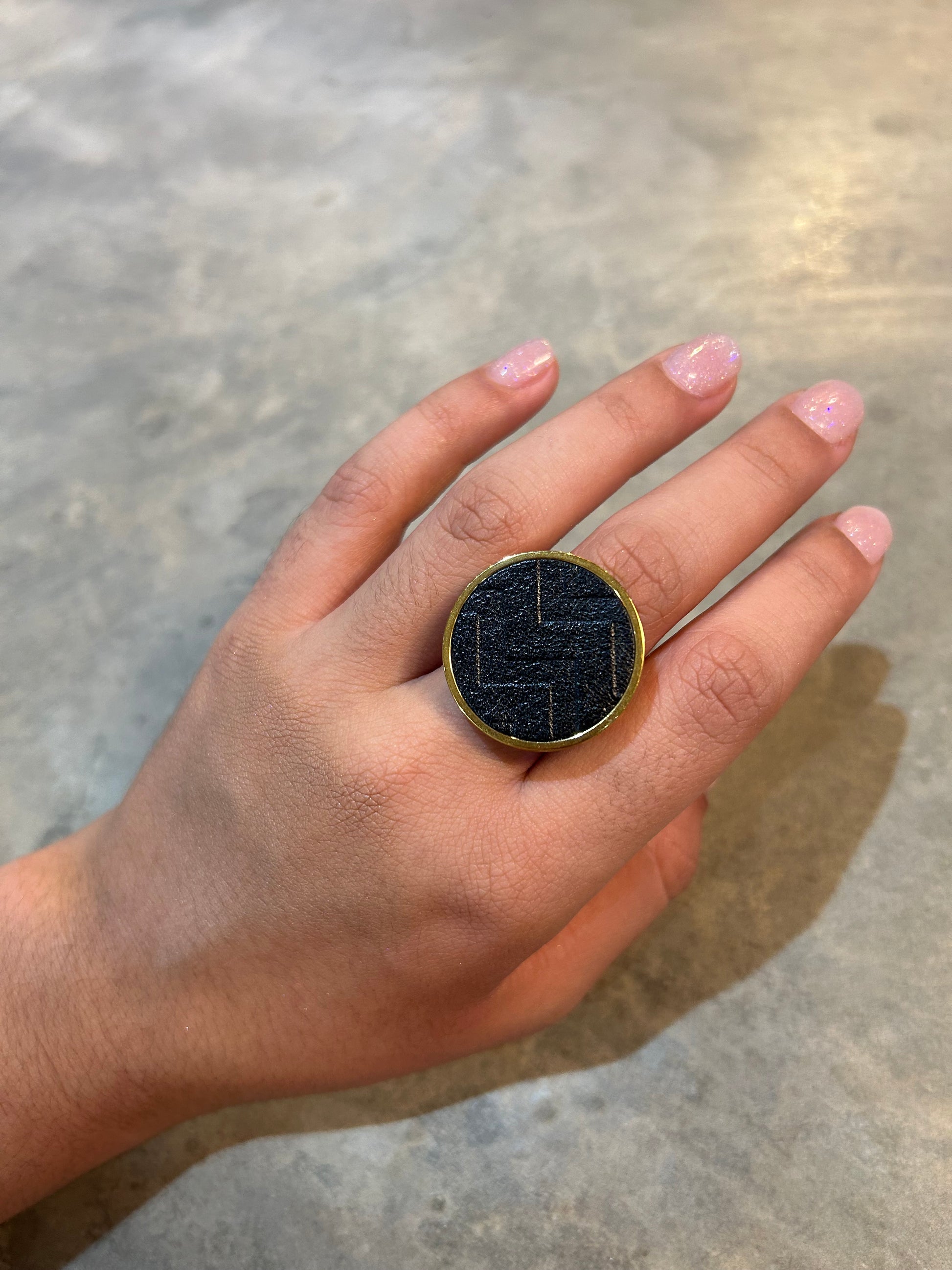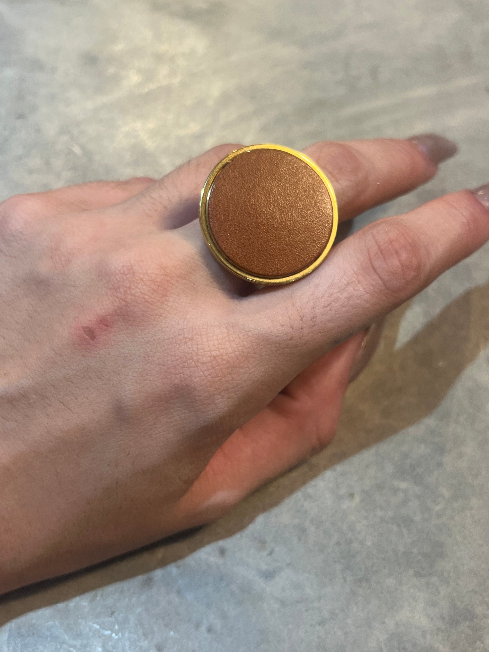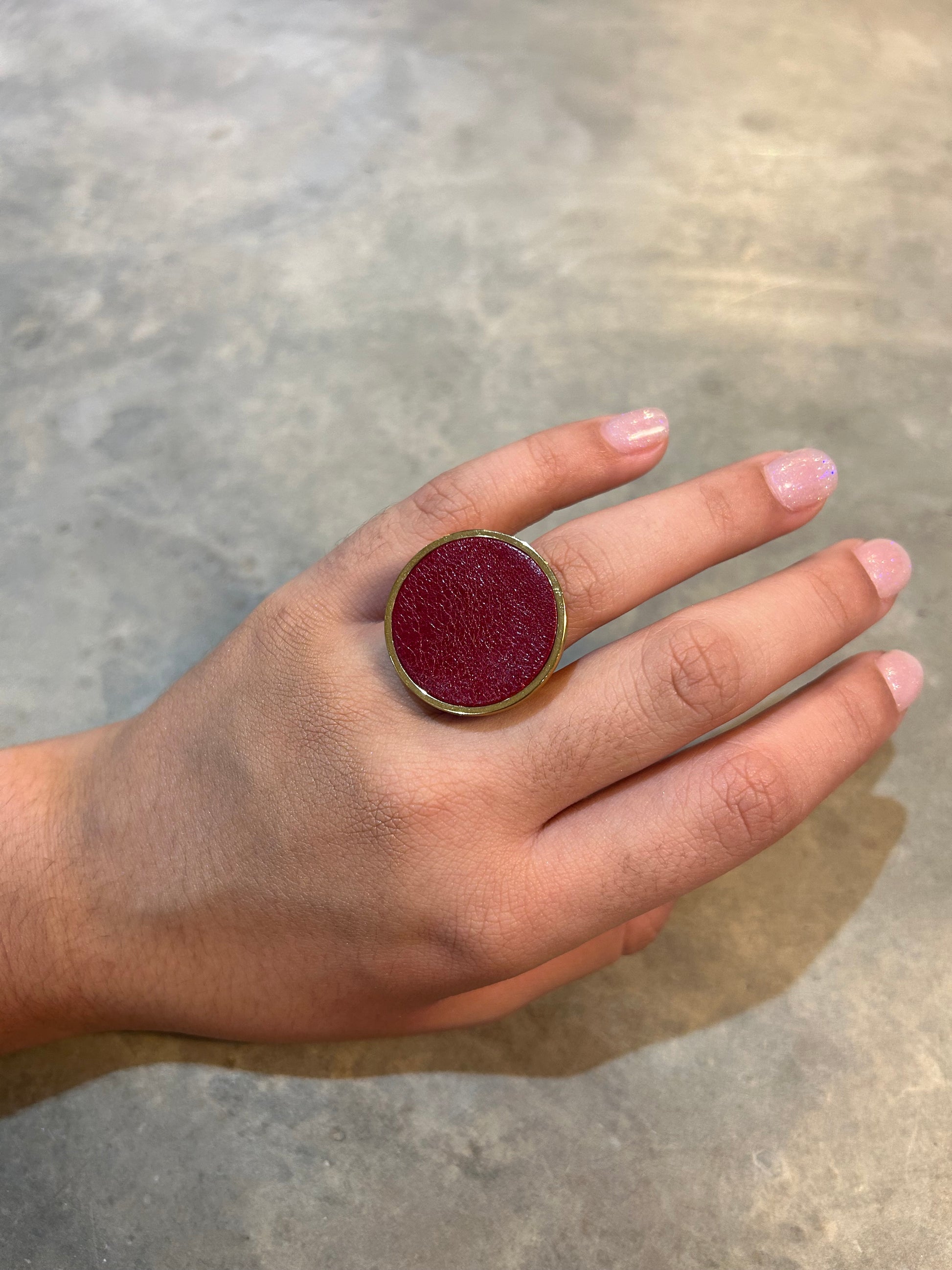 This ain't your average ring. Made of luxurious leather, this bold and oversized piece will make a statement on any finger. Upgrade your jewelry game with the Big Leather Ring. (Ring size jokes optional!)