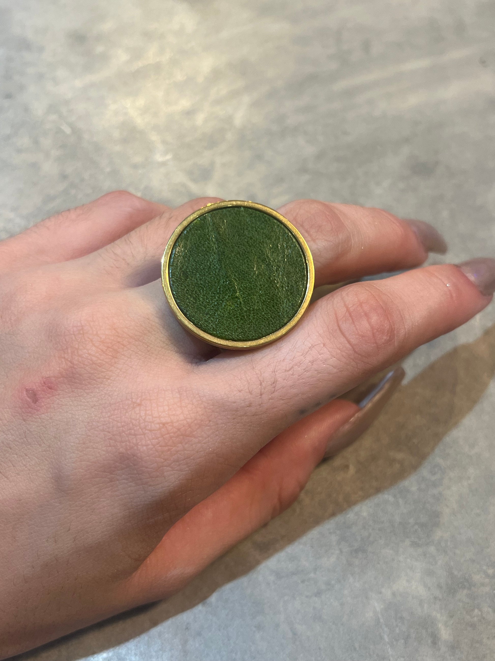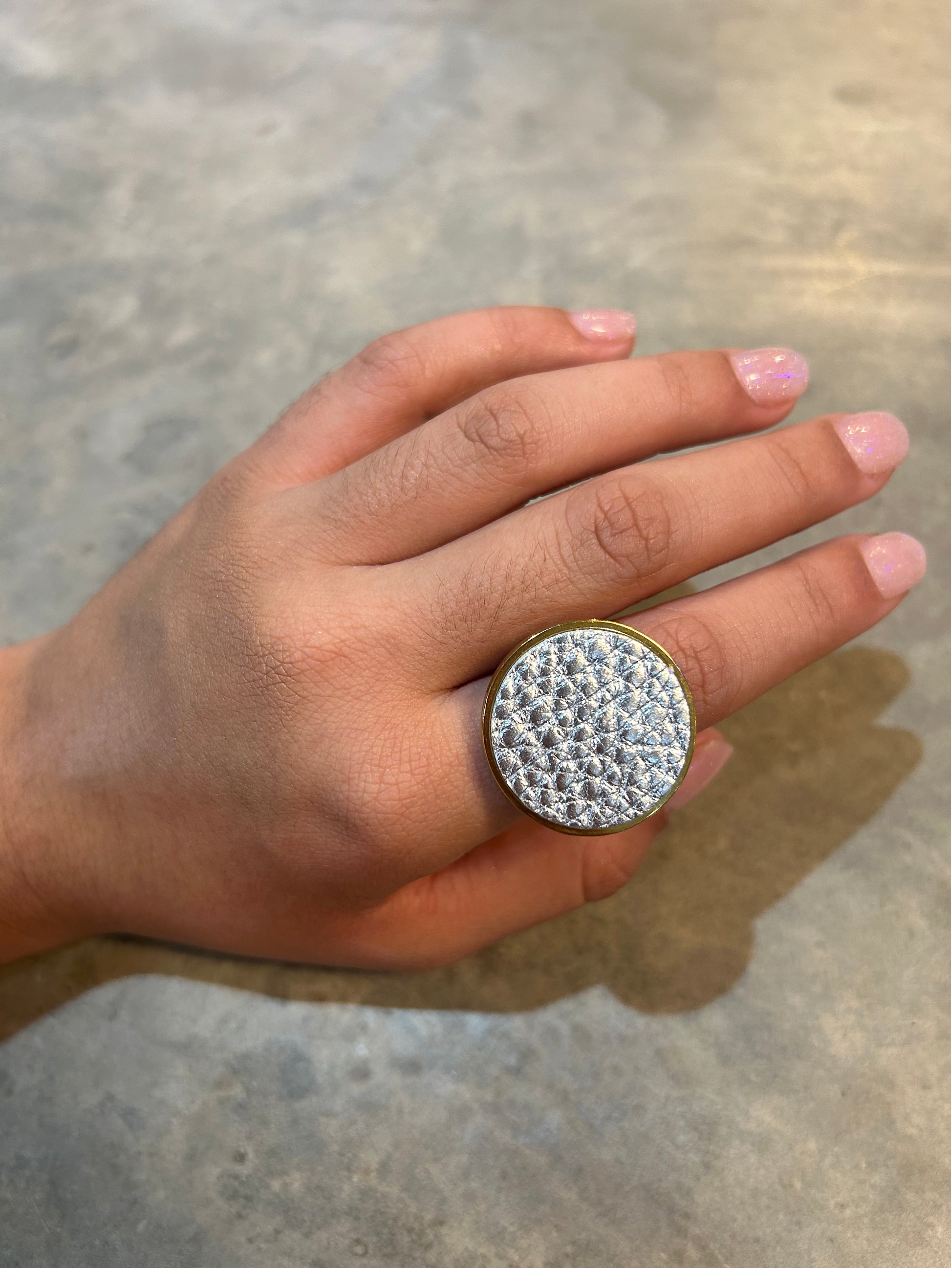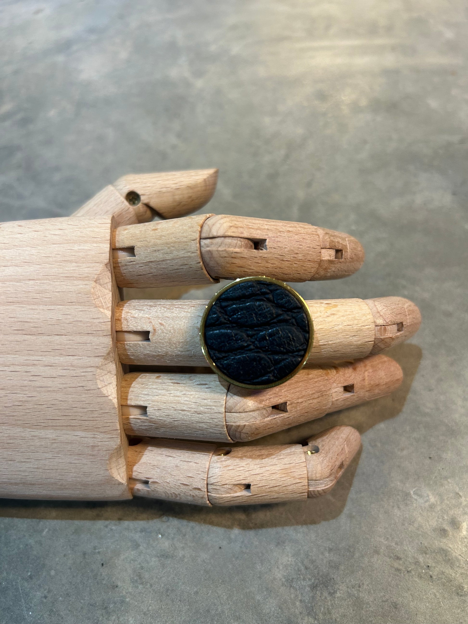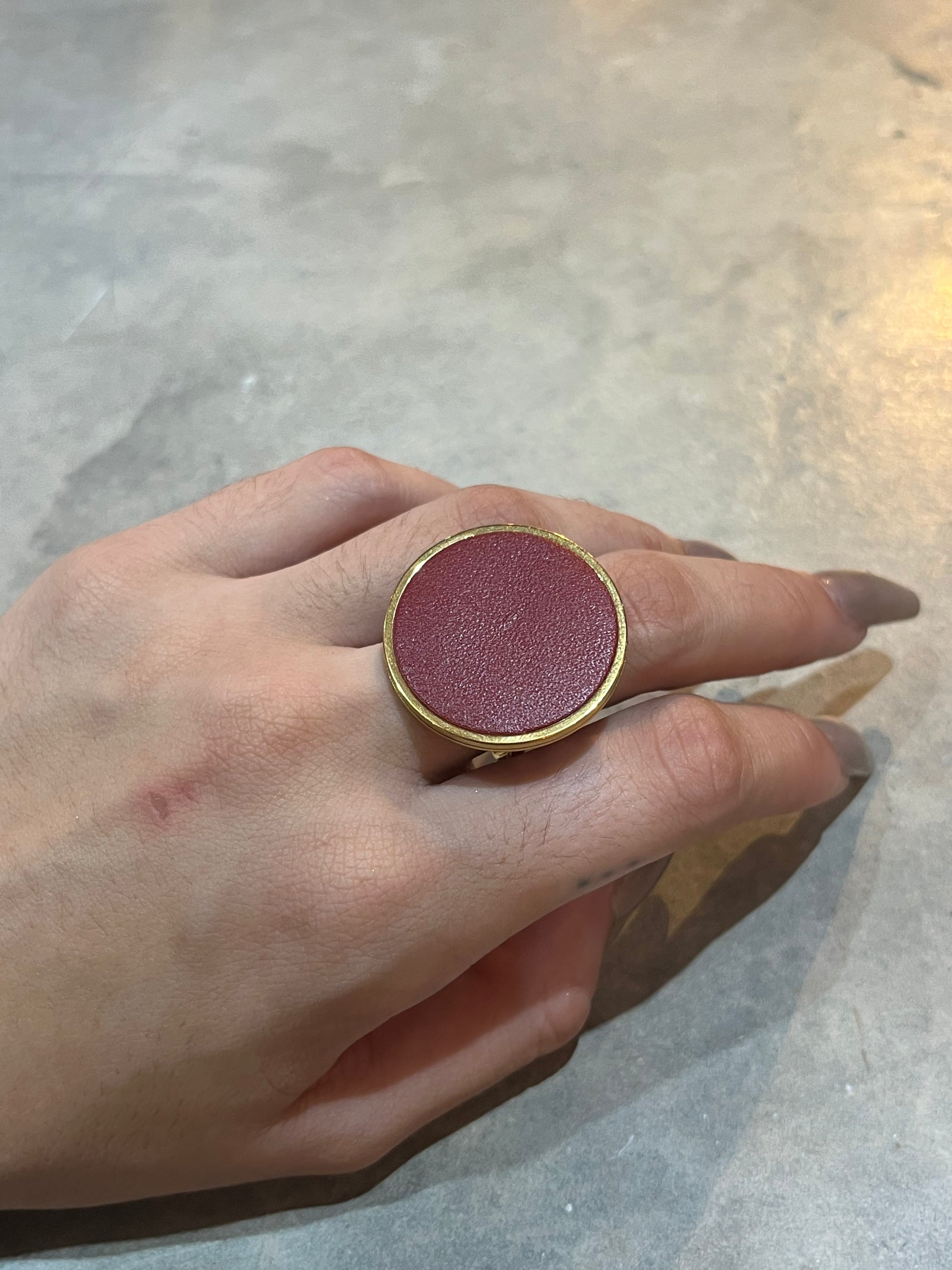 This ain't your average ring. Made of luxurious leather, this bold and oversized piece will make a statement on any finger. Upgrade your jewelry game with the Big Leather Ring. (Ring size jokes optional!)