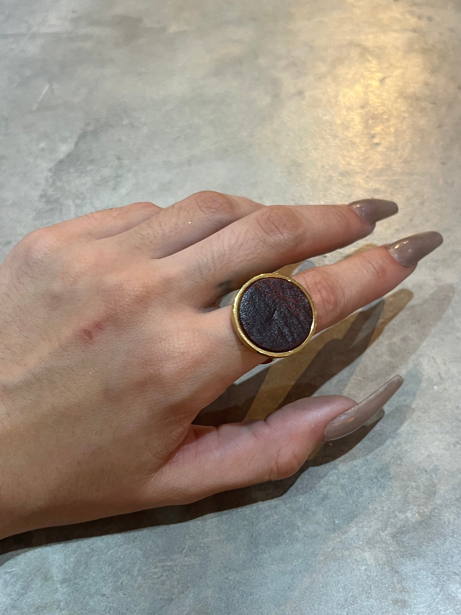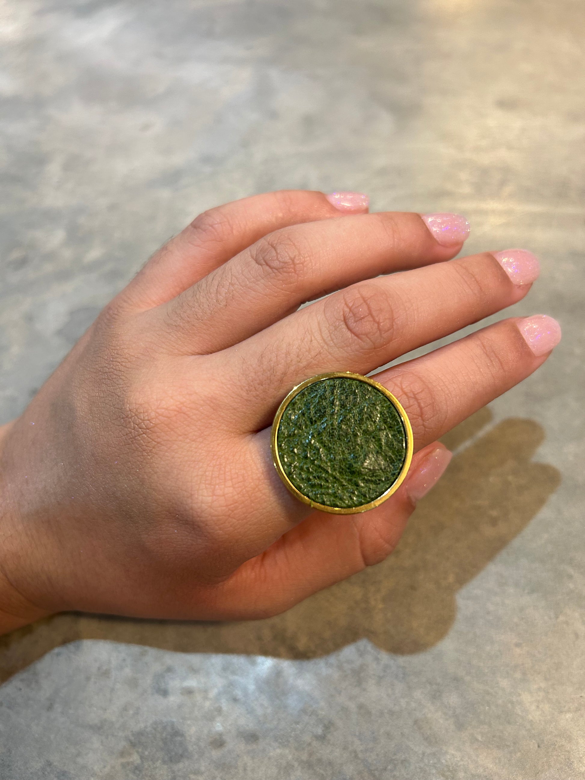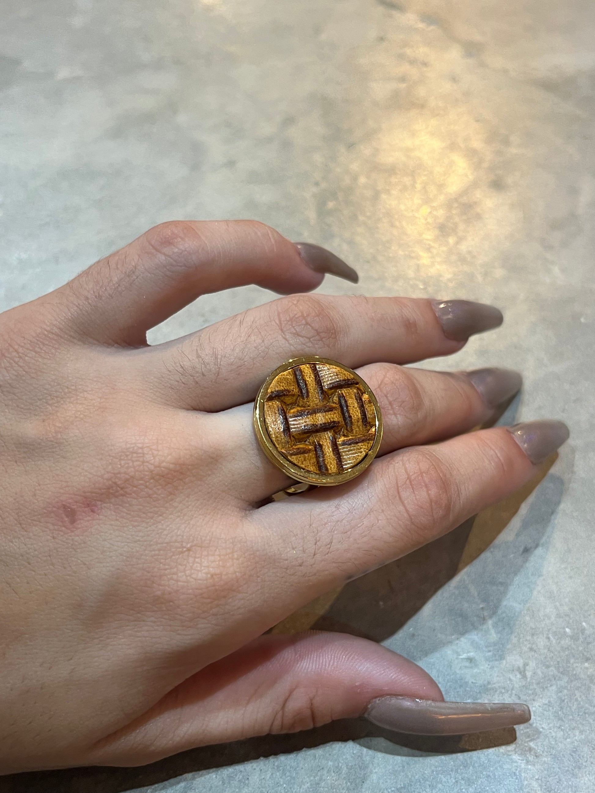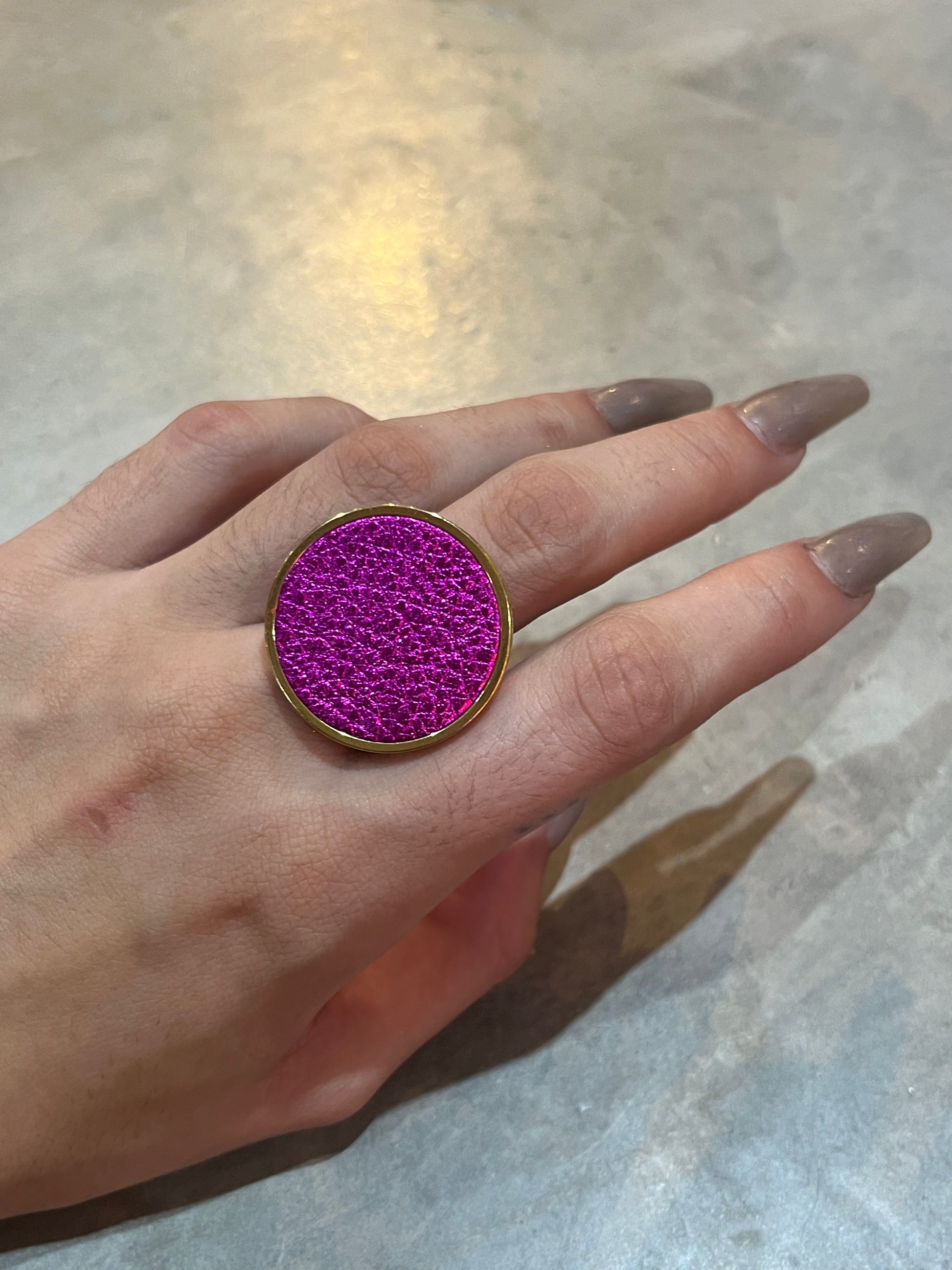 This ain't your average ring. Made of luxurious leather, this bold and oversized piece will make a statement on any finger. Upgrade your jewelry game with the Big Leather Ring. (Ring size jokes optional!)