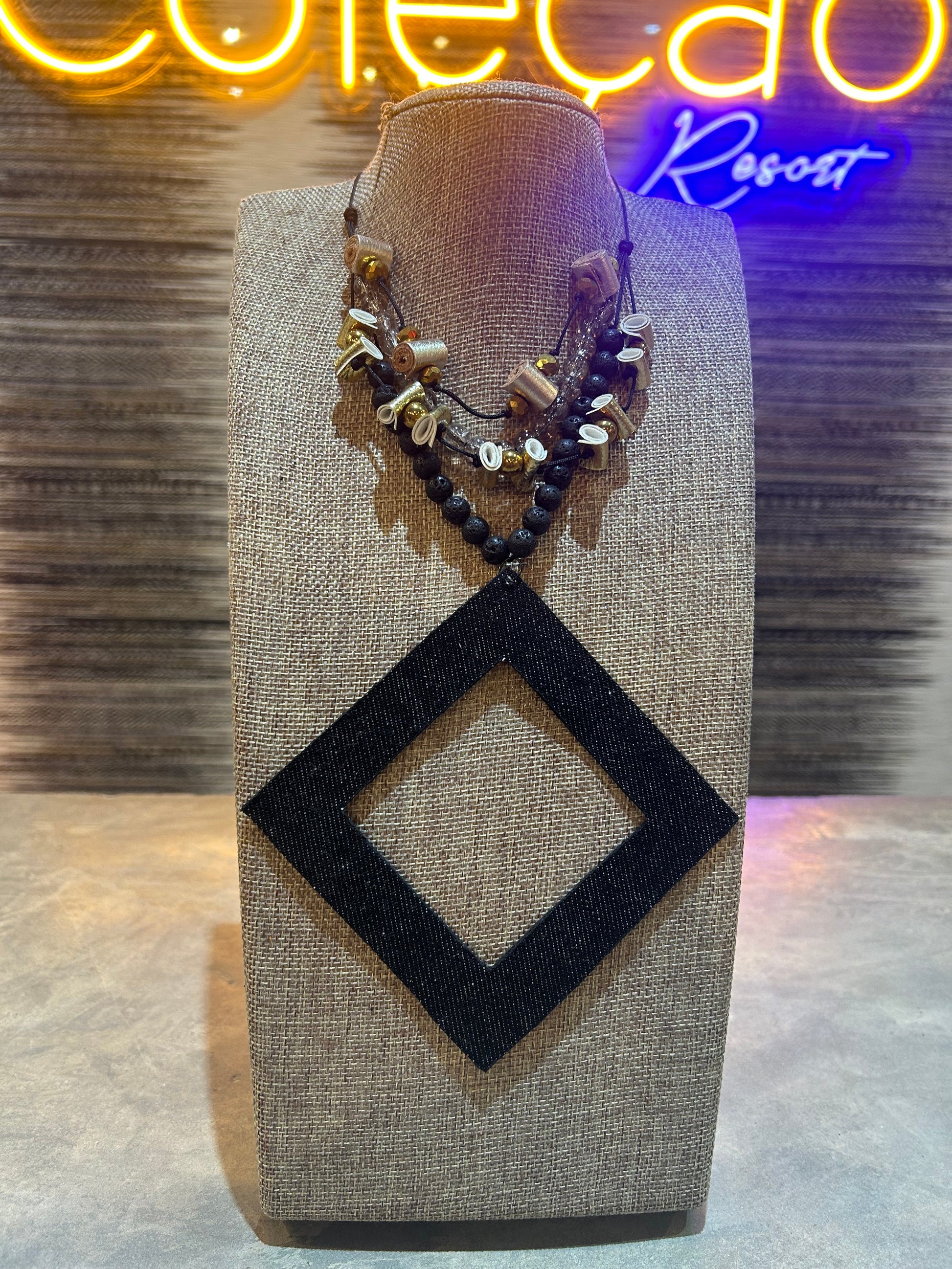 Collar hecho con cuero reciclado a mano por la diseñadora Arlenne Diaz
