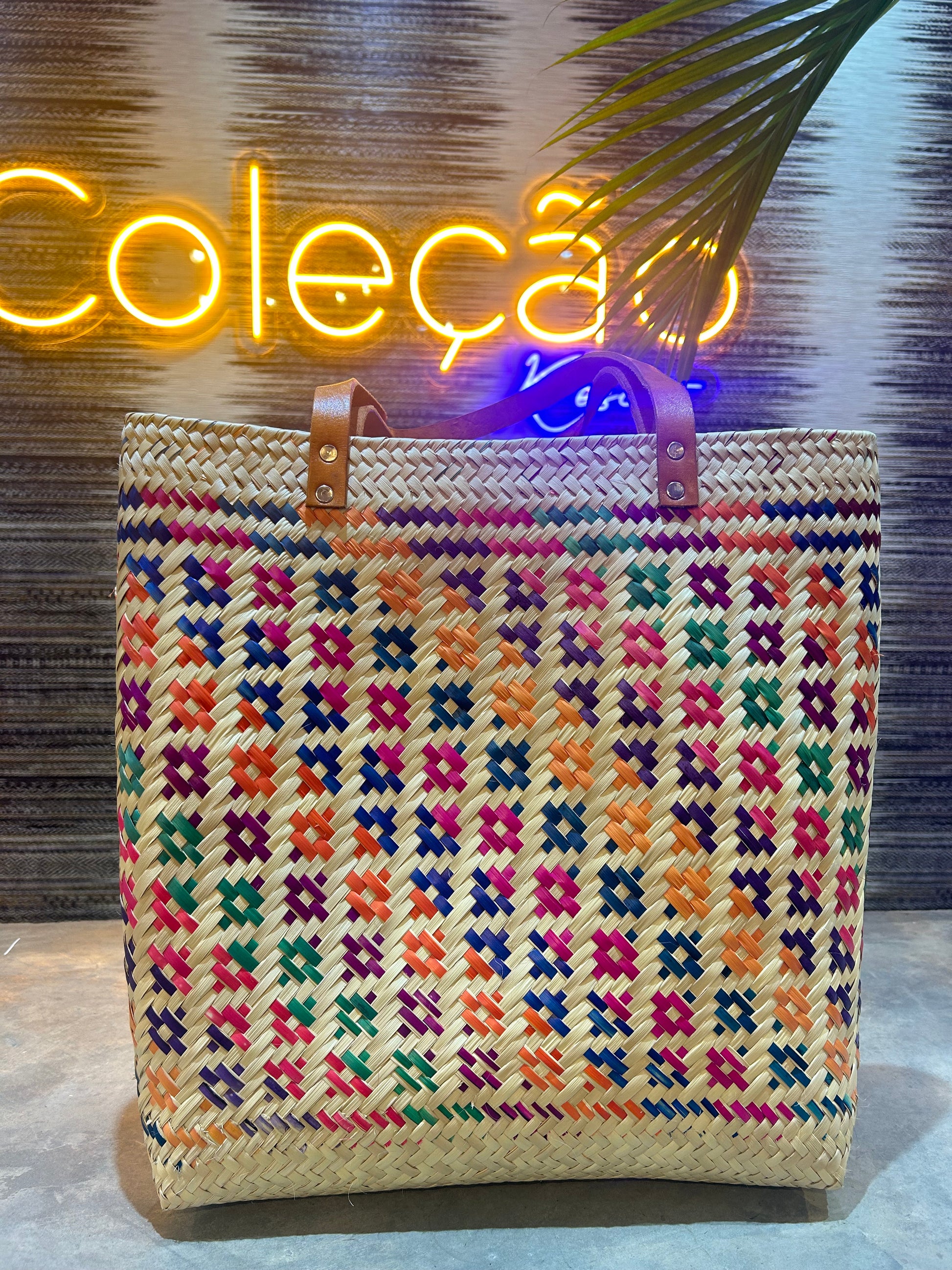"Add a touch of Mexican flair to your outfit with the Bolso Penca Palma Mexicano. This unique bag is handcrafted with penca palma, providing a sturdy and stylish design. Carry your belongings with ease and show off your playful side with this quirky and fun accessory."Hecho a Mano en Penca de Palma Natural