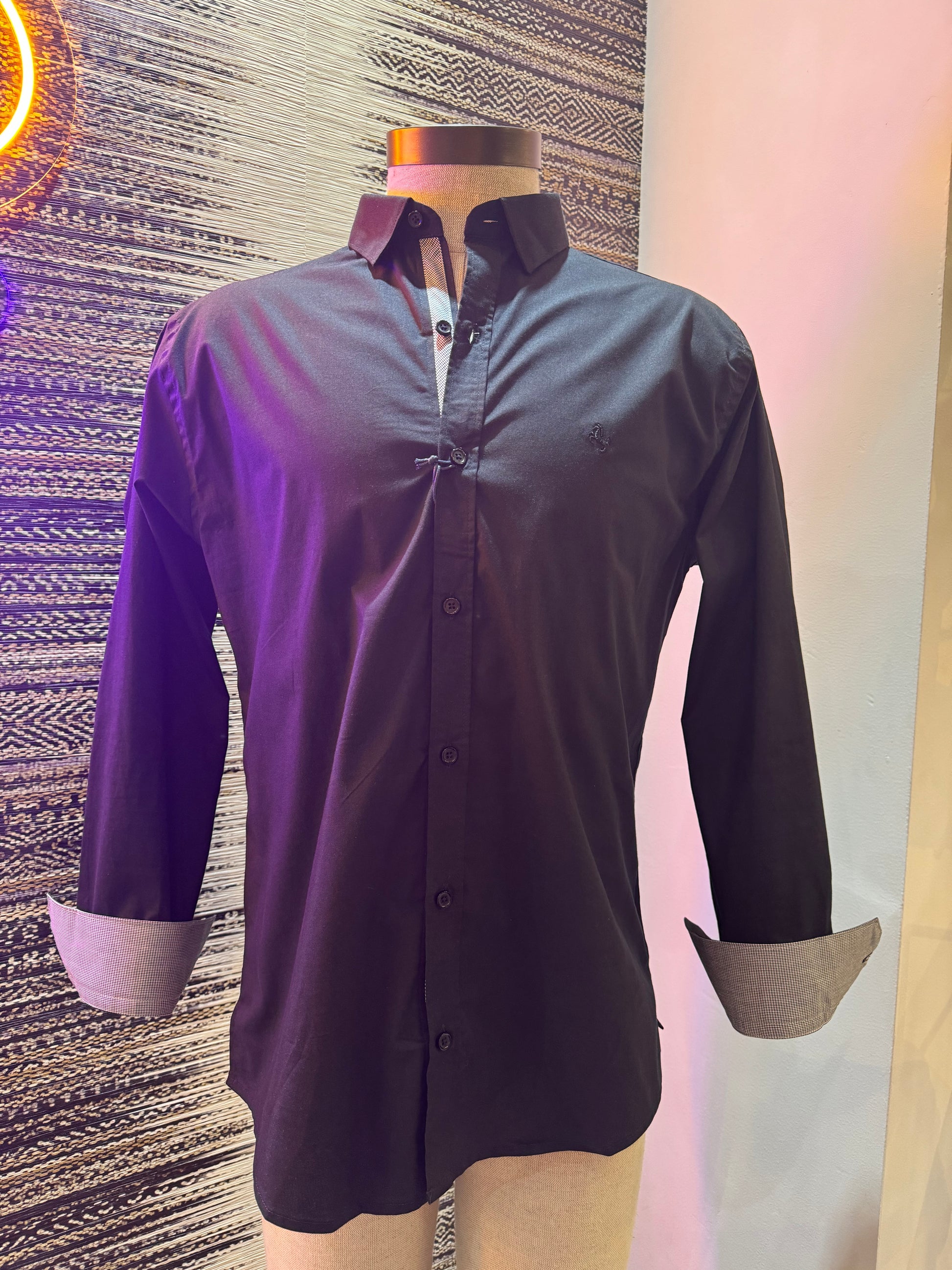 Get ready for some serious style in this Black Solid Shirt by Boronea. The sleek black design will elevate any look, while the high-quality fabric ensures ultimate comfort. Make a statement with this versatile shirt, perfect for any occasion. (Warning: may cause excessive compliments!)