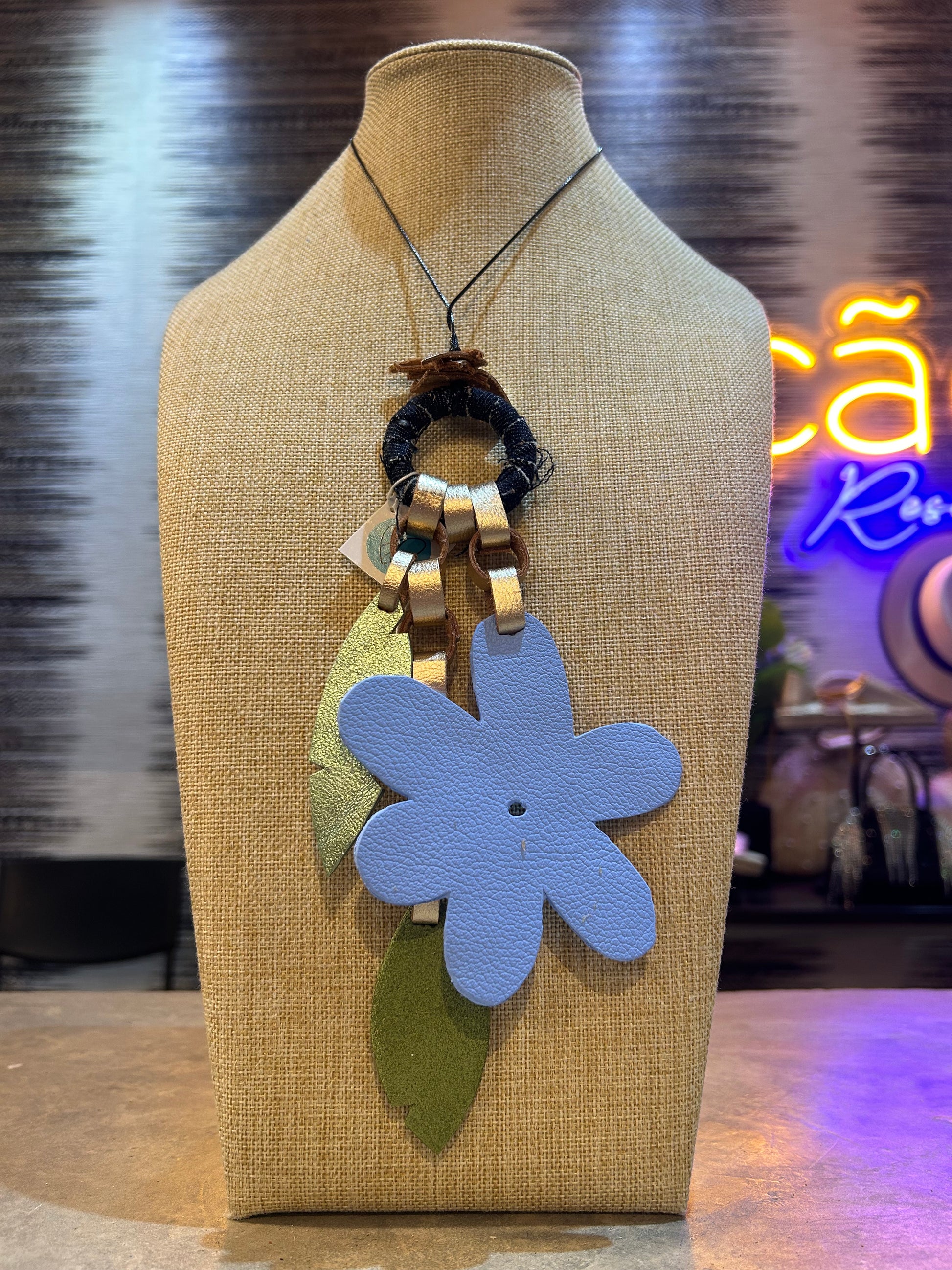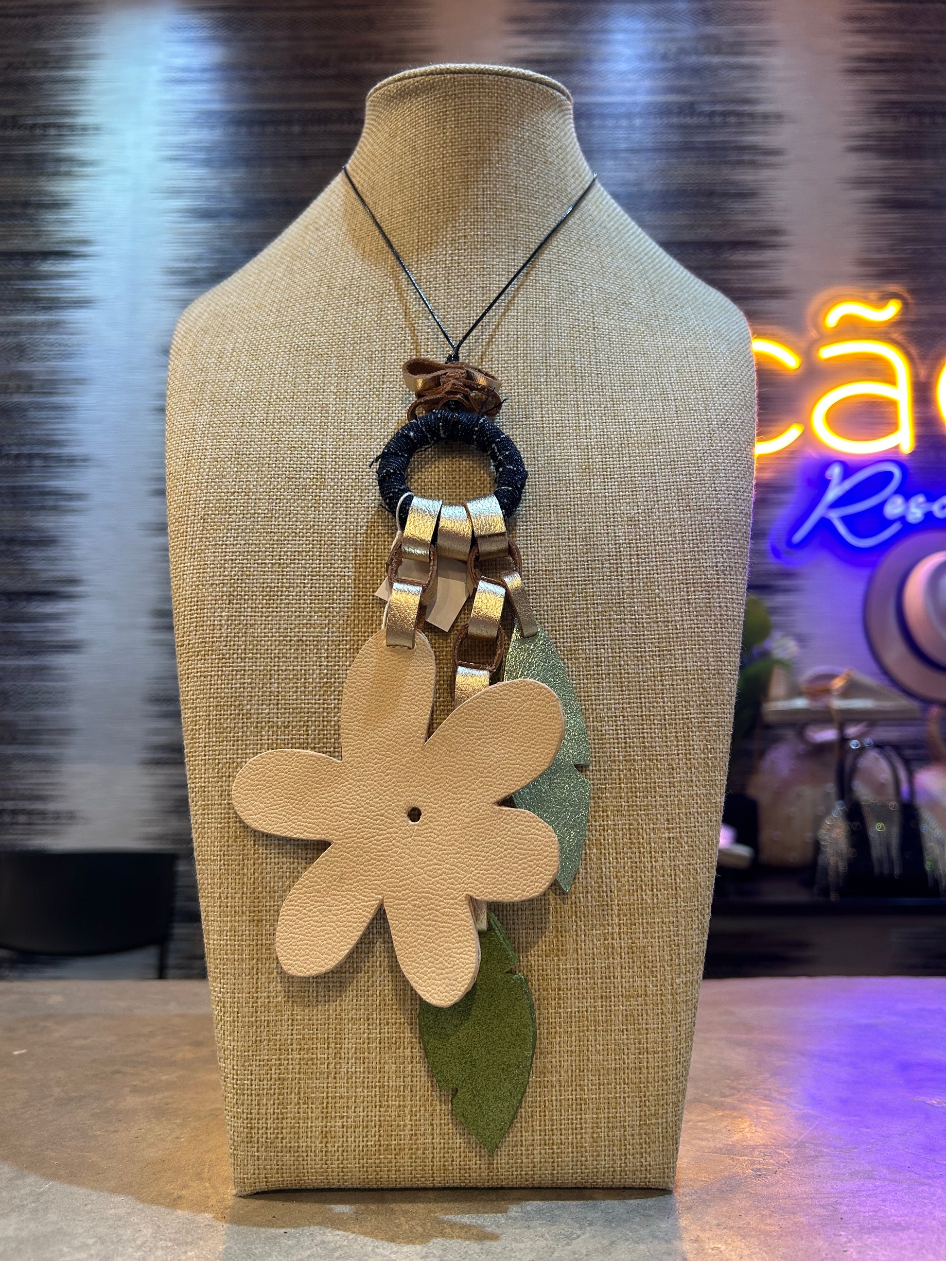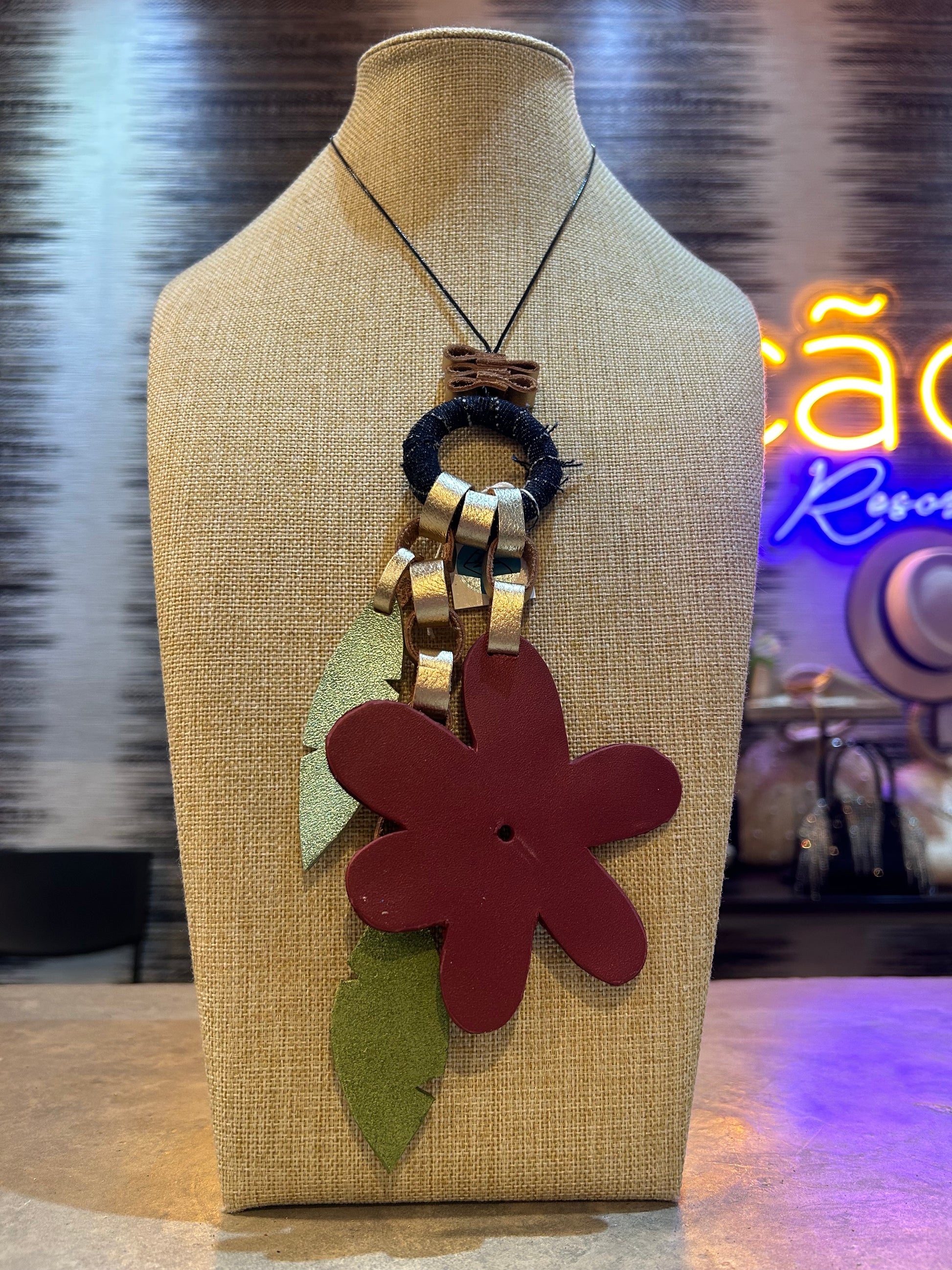 This unique collar is crafted by hand using recycled leather by designer Arlenne Diaz. Support sustainable fashion while making a statement with this one-of-a-kind flower necklace.