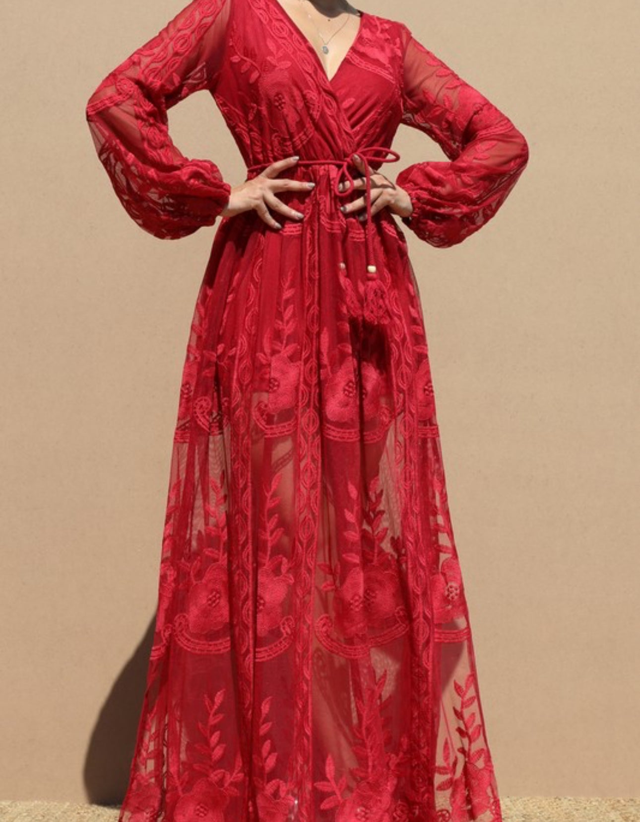Expertly crafted with delicate lace fabric, this long maxi dress exudes elegance and sophistication. Its puff sleeves add a touch of femininity, making it the perfect choice for any formal occasion. Made with high-quality materials, this dress promises comfort and style. Elevate your wardrobe with this timeless piece.