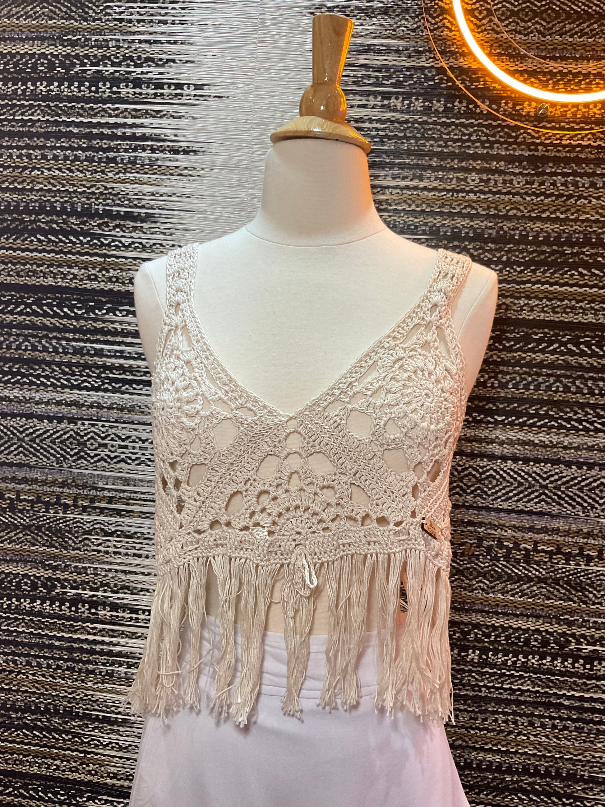 Lau Crochet Top con Flecos Crema Rectangular