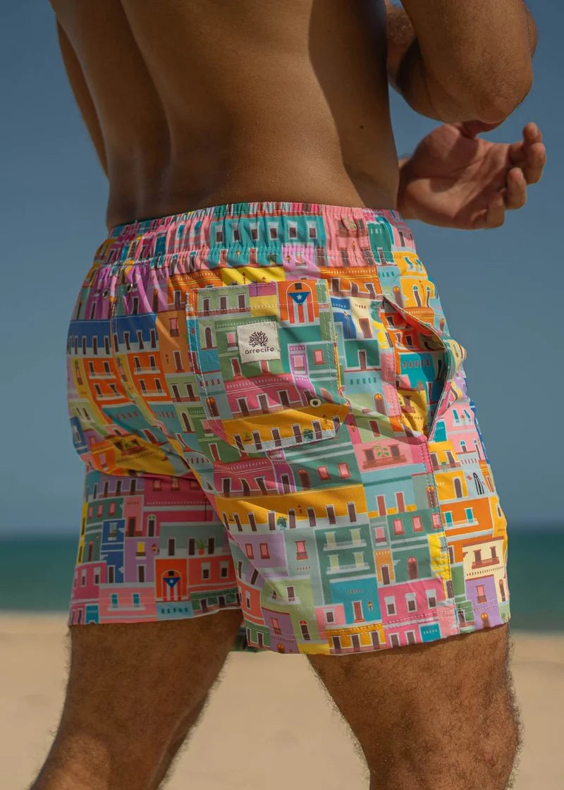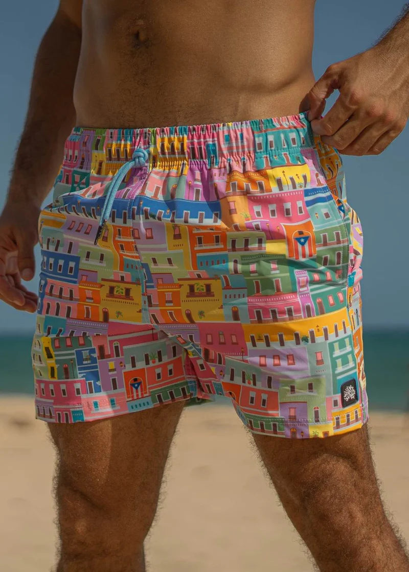 Inspired by the colorful houses and rich history of Old San Juan, Puerto Rico. These swim shorts are the perfect blend of style and comfort, making them the ideal choice for your next beach vacation or poolside lounging.