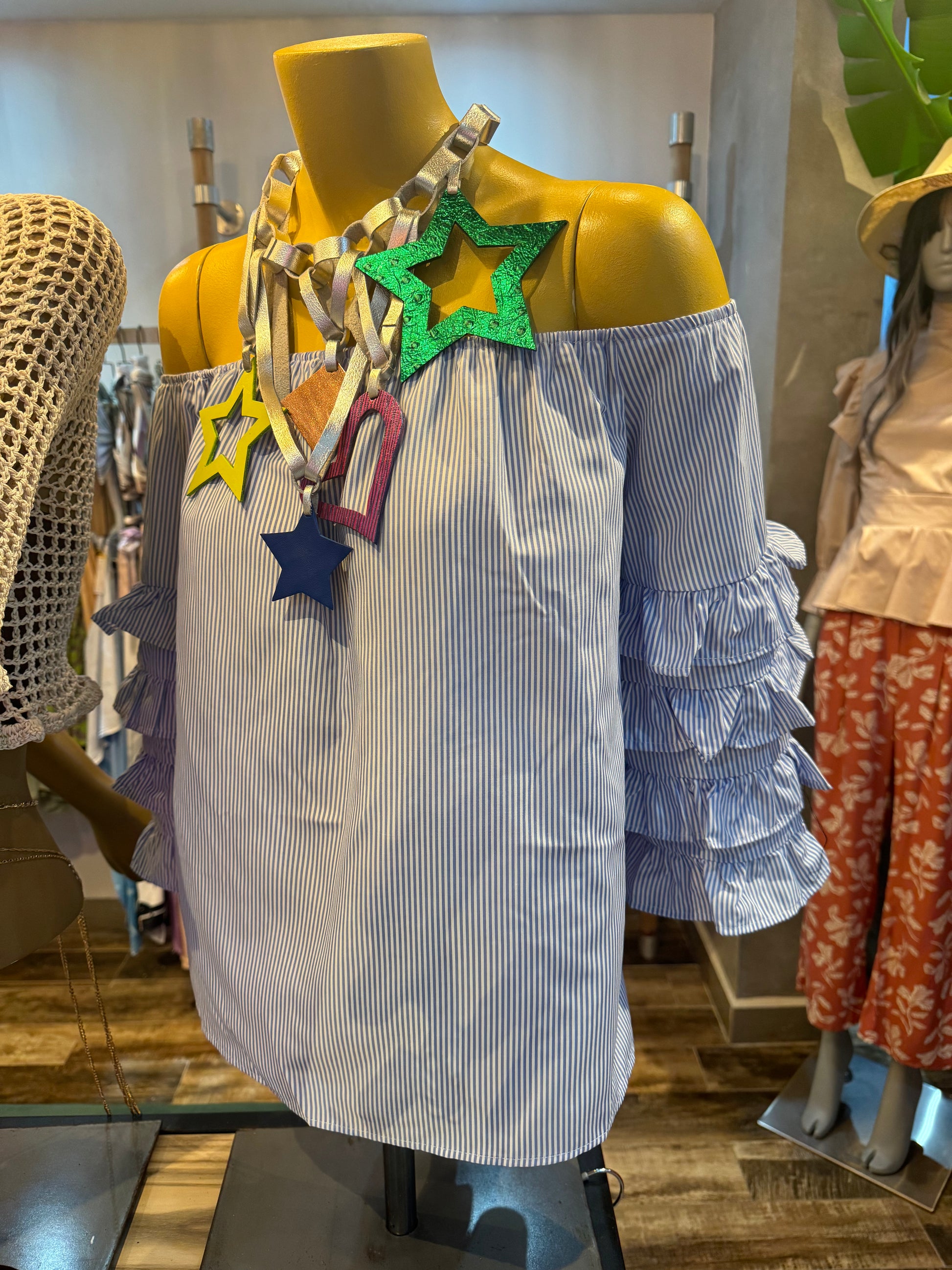 This Off Shoulder Ruffle Sleeve Top features a stylish and feminine design that adds a touch of elegance to any outfit. Made with high-quality materials, it offers a comfortable fit while the ruffle sleeves elevate the look. Perfect for a sophisticated and chic look on any occasion.