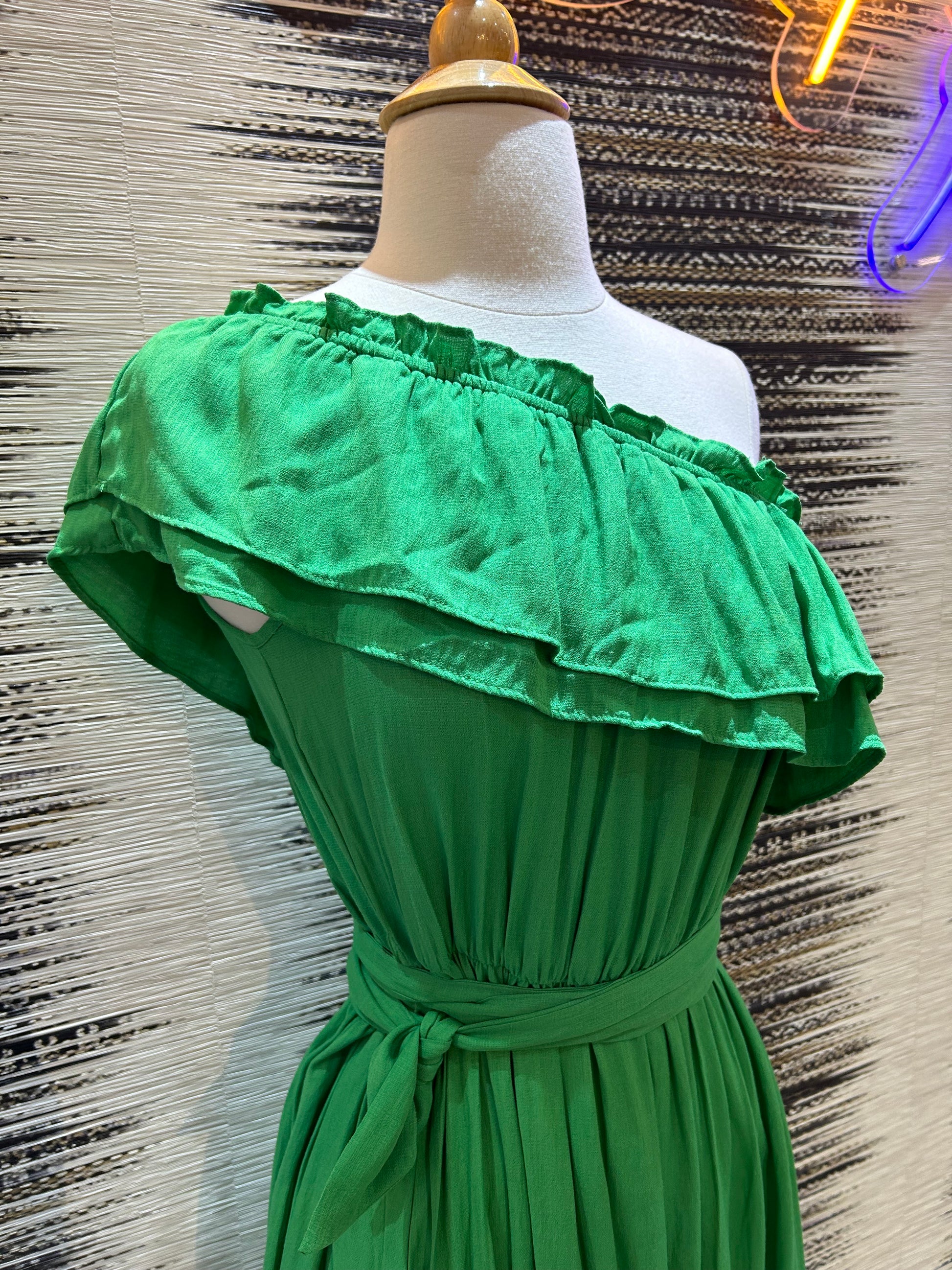 One Shoulder Green Maxi Dress