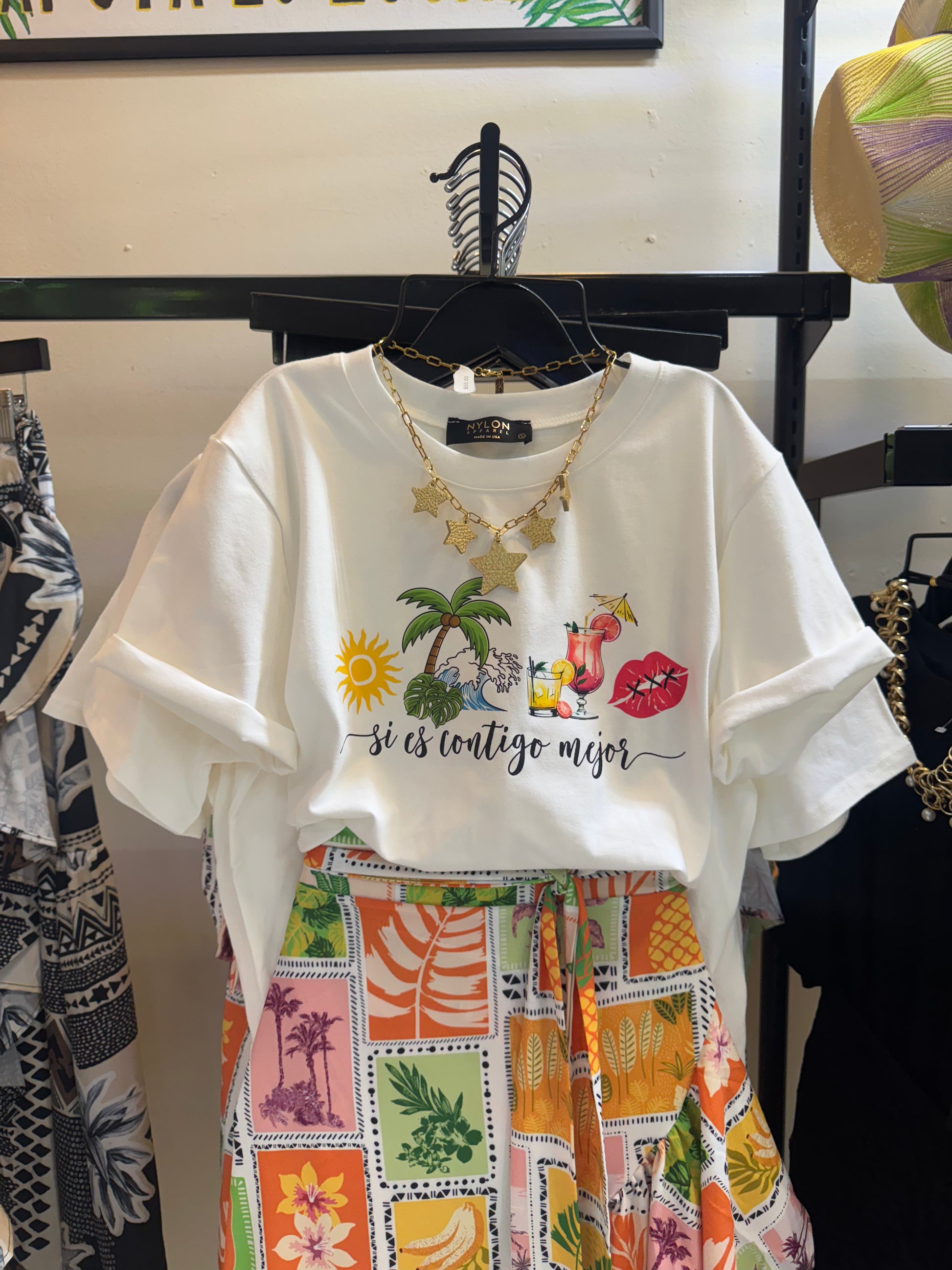 "Get loose and stylish with the Bad Bunny Si es Contigo Mejor Loose Crop. Embrace the playful vibes with a stylish crop top that shows off your love for Bad Bunny. Perfect for any casual occasion, this crop is sure to be your new favorite piece!"