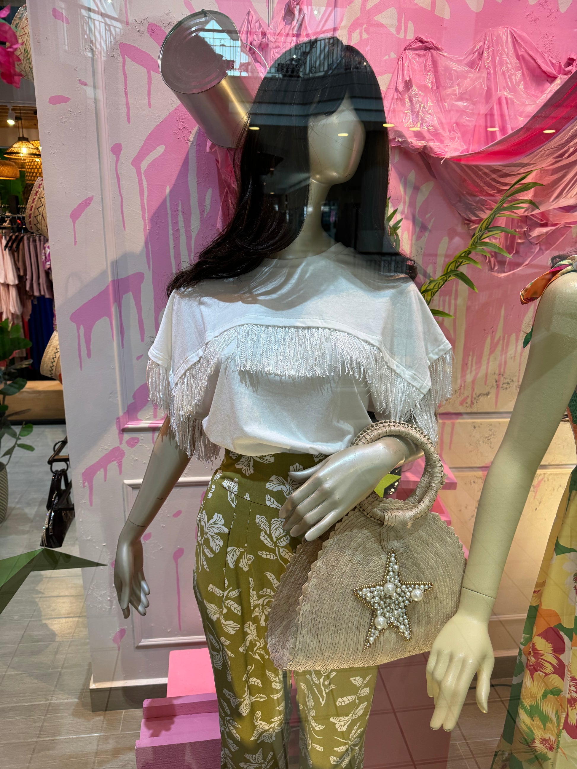 Add a playful touch to your wardrobe with our Tassel Trim Short Sleeve Top. Featuring a fun tassel trim, this top is perfect for any occasion and will add a unique flair to your outfit. Say goodbye to boring basics and hello to this quirky top!