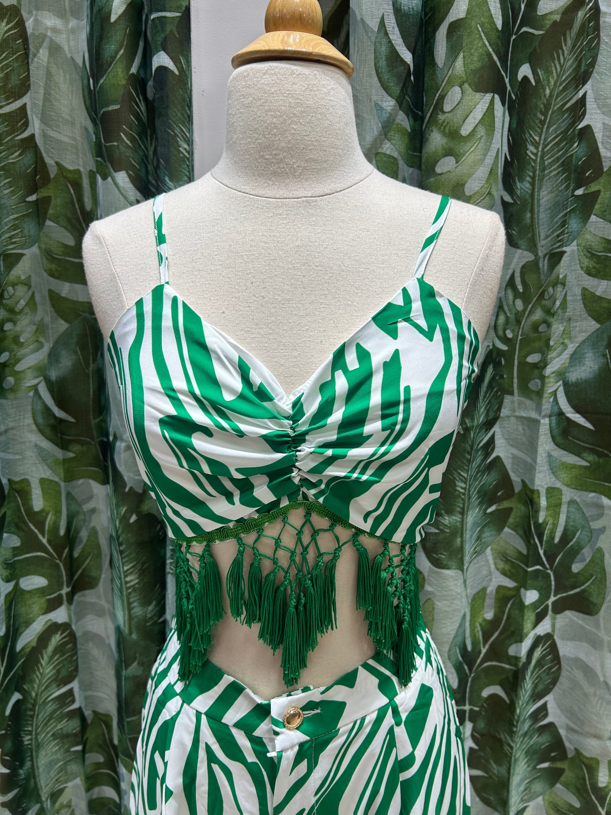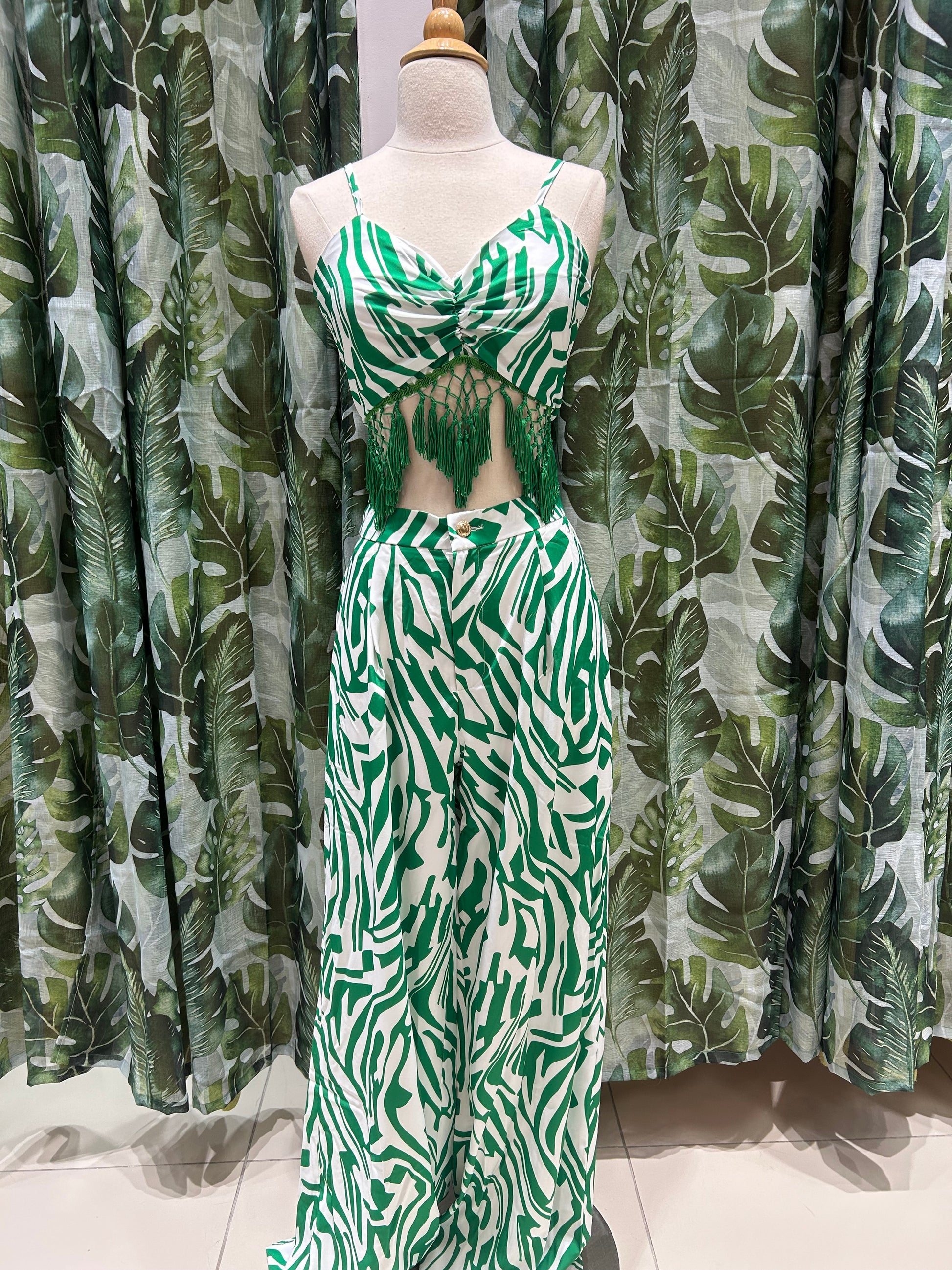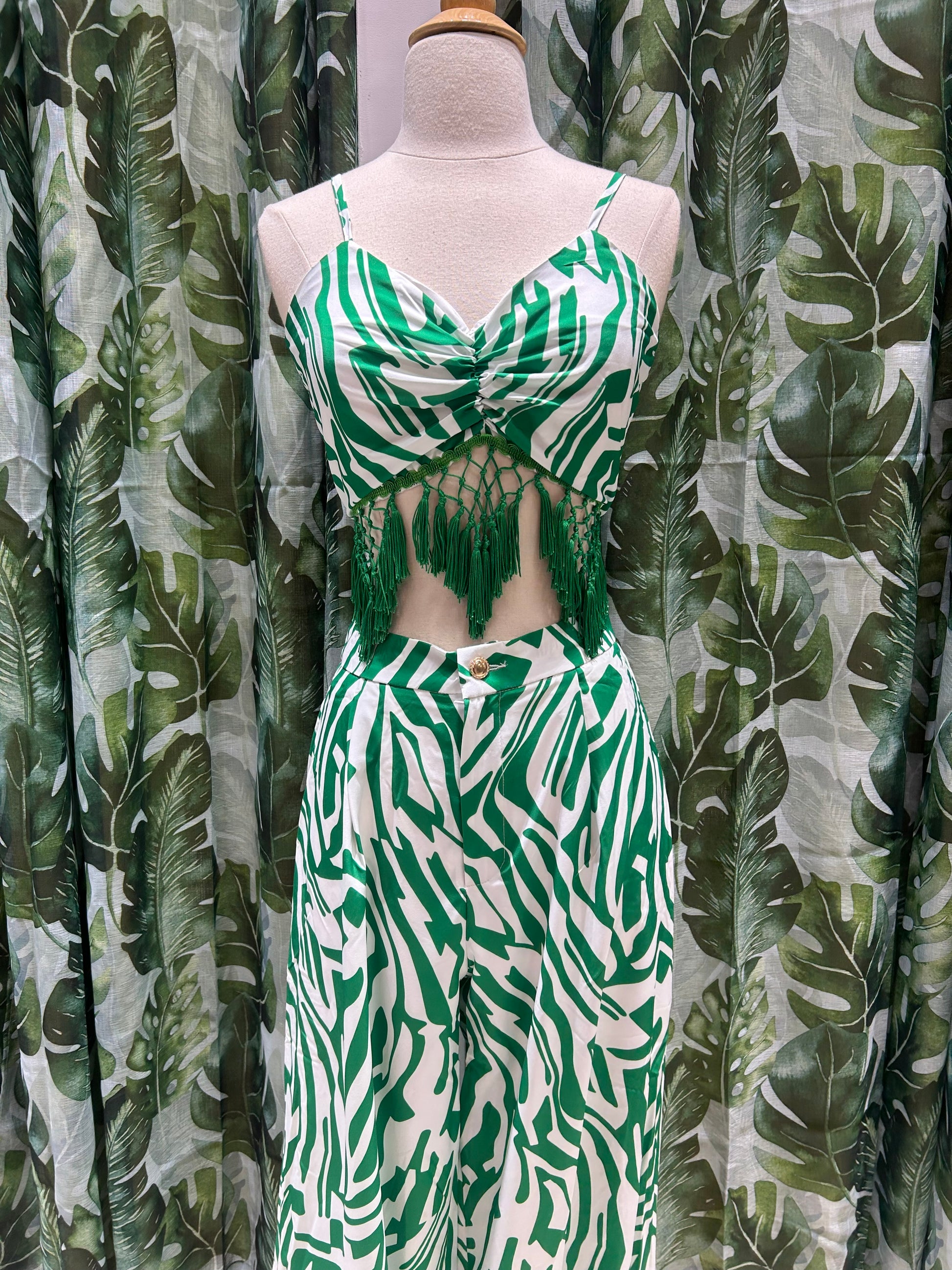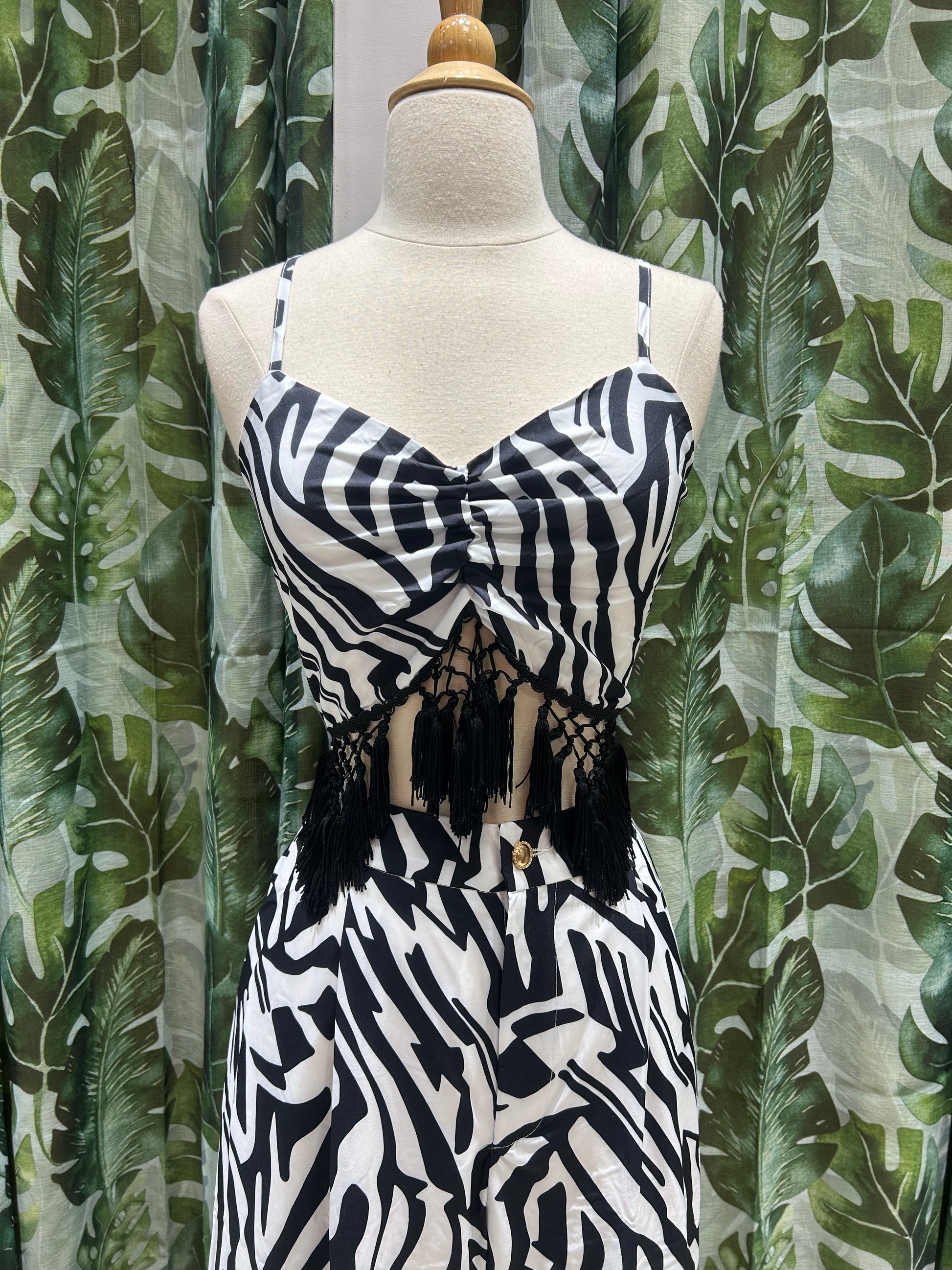 Introducing the Zebra Set With Fringes - a stylish and versatile addition to any wardrobe. This set features an eye-catching zebra print and fringed detailing, adding a touch of fun and flair to your look. Made with high-quality materials, this set offers both comfort and durability. A must-have for the fashion-forward individual.